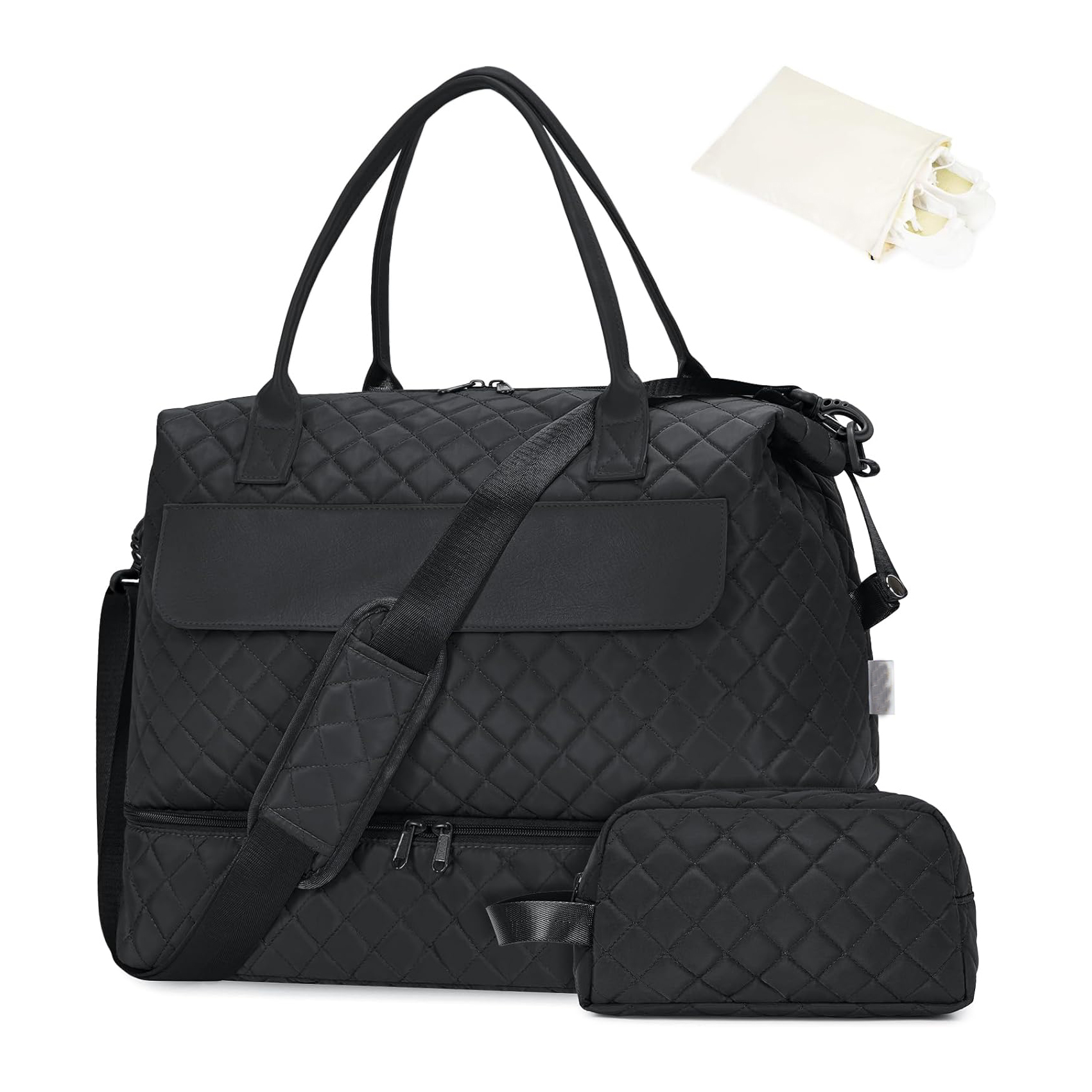 Travel Duffle Bag for Women Weekend, Hospital Bags with Toiletry Bag, Weekender Bags with Shoe Compartment, Carry On Overnight Holdall Bag for Women, Gym Bag with Wet Pocket Black / ItemYH02-168