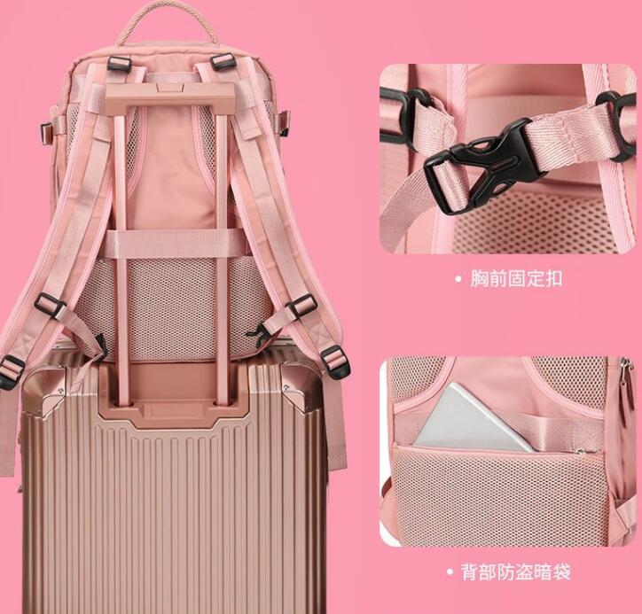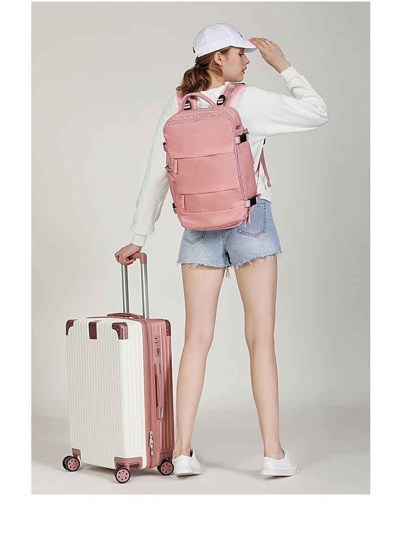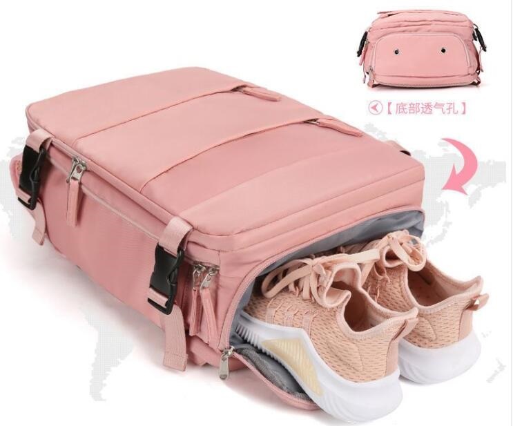 Model item # LW05-02 Product Detail: multifunctional backpack for luggage, shoe pocket, large capacity Colors: PMS Material:Nylon (waterproof) Size:42X31X17 cm |