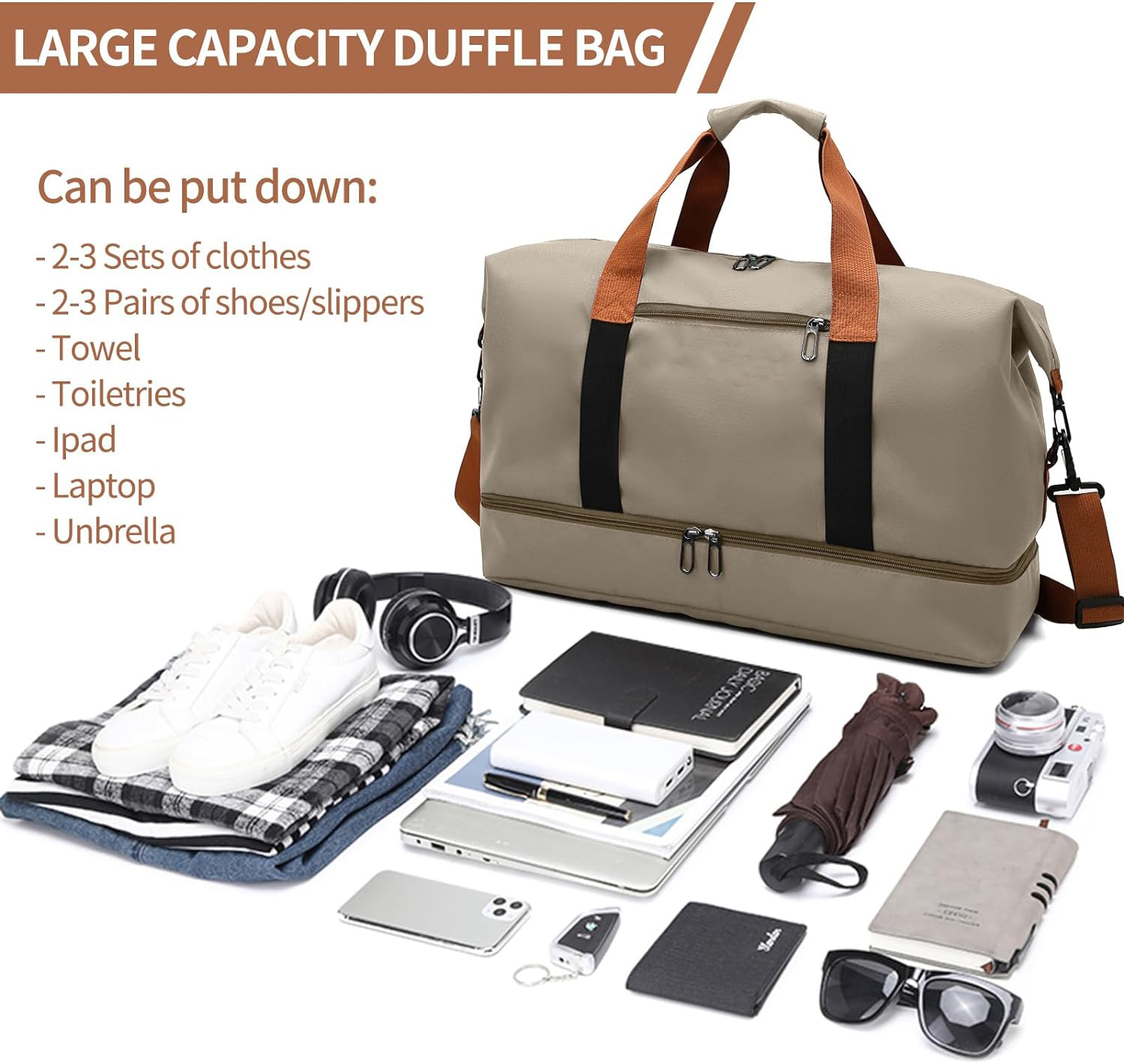Travel Bag Sports Gym Bag with Shoe Compartment & Wet Pocket, Foldable Weekend Travel Duffle Bag for Men Women, Large Capacity Portable Overnight Bag for Vacation, Gym, Sport,Yoga / Item# YH02-156