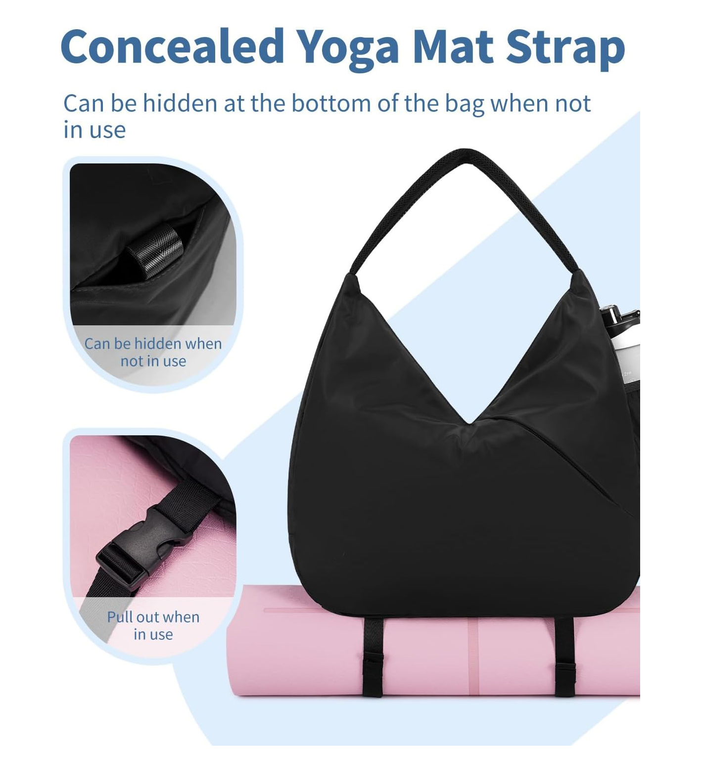 (1)The main compartment measures 17.5*18*6.3 inches, offering a spacious 30-liter capacity, enough to accommodate all your travel essentials and fitness gear. (2)Water-resistant material,Tthe gym tote bag is your perfect companion for workouts, travel, dance, and yoga. Stay prepared for any activity with this all-in-one solution (3)The unique storage design allows these carrying straps to be discreetly stowed away when you don't need to transport the yoga mat, preserving the aesthetics and everyday usability. |