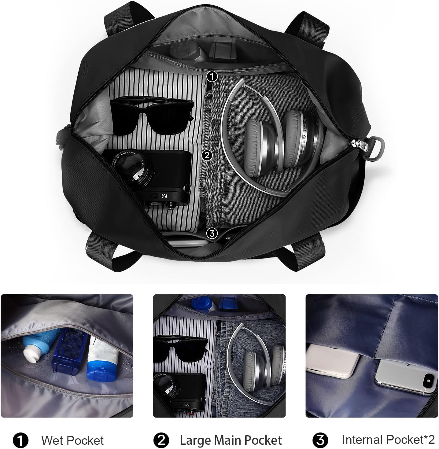 (1)The strap is soft and heavy duty, which could let your hands free, perfect choice for your weekend holiday. Durable and wear-resistant,You can put the overnight bag for airplanes under seat. (2)The high density water resistant material can help you to separate dry items and wet items,if you have wet clothes or towel,you can put it in this crossbody bag. (3)Our sport gym bag is a perfect reliable companion for both indoor and outdoor sports.It is a great shoulder bag for workout, travel, sports activity, tennis, basketball, yoga, fishing, hunting, camping, hiking and many outdoor activities. Suitable for gym sport bag, school duffle bag, travel duffel bag, travel holdall bag, gym holdall,etc. |