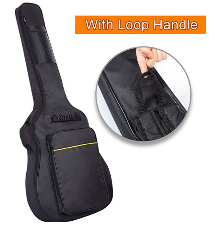 Dual adjustable shoulder straps + three handles for convenience. This new version guitar bag with back hanger loop can be hung on the wall for decoration.