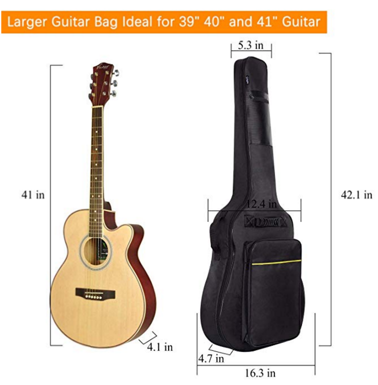 42.1 x 16.3 x 4.7 inches, compatible with 39/40/41 inch guitars