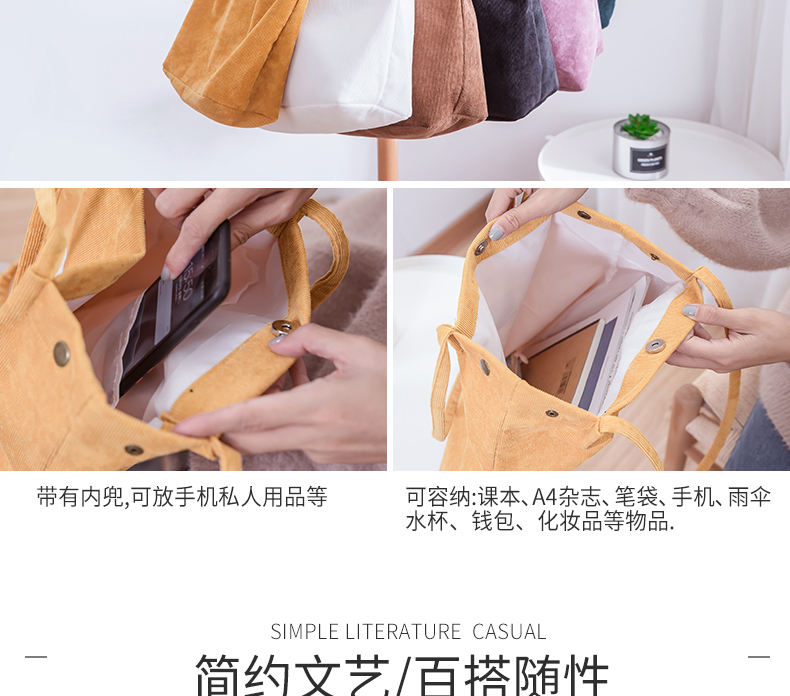 Model item # CCB02-06 Product Detail: Lightweight and folds flat for easy storage Close:Magnetic buckle design Color:Multicolor optional Internal structure: zipper dark bag |