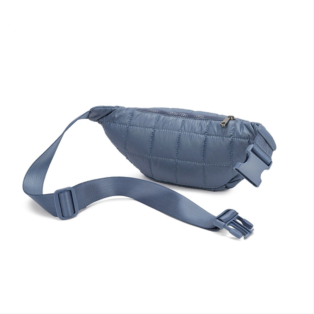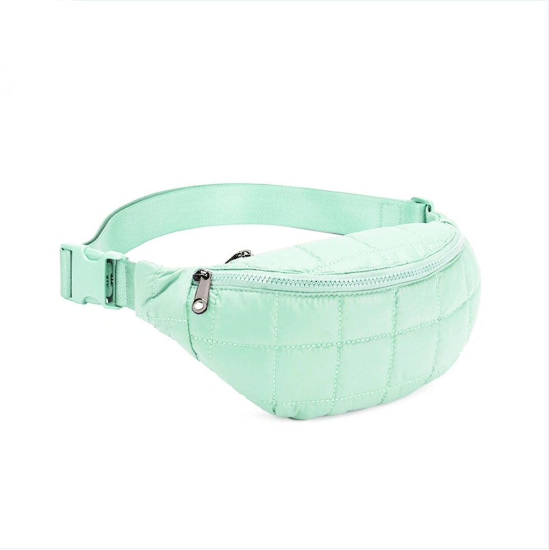 Wholesale Price Custom Logo Puffer Sling Messenger Crossbody Waist Shoulder Pad for Bag Belt Green Quilted Fanny Pack / Item#RL21-12