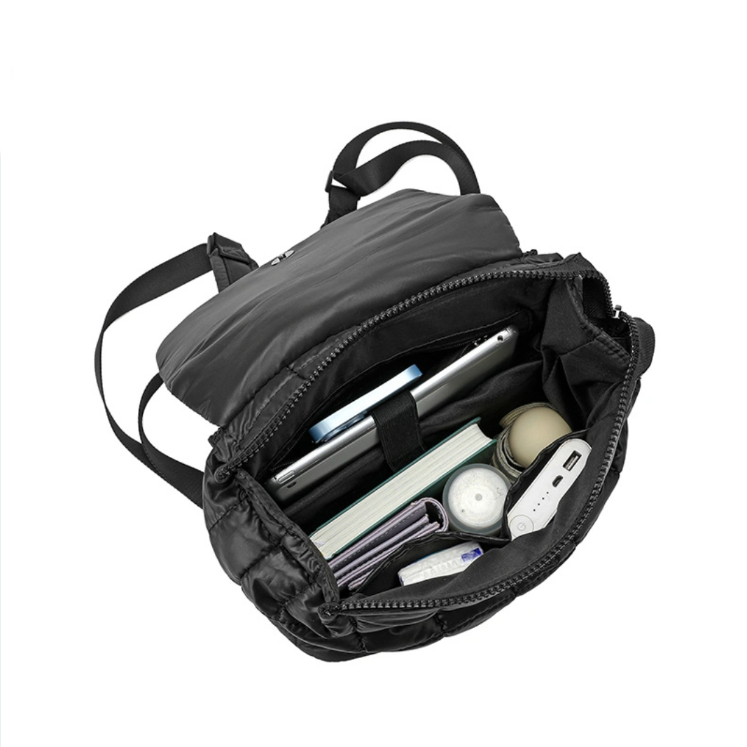 Lightweight Unisex Winter Quilted Bag Women Sports Down Backpack Double Shoulder Bag Large Capacity Fluffy Puffer Backpacks / Item#RL21-24