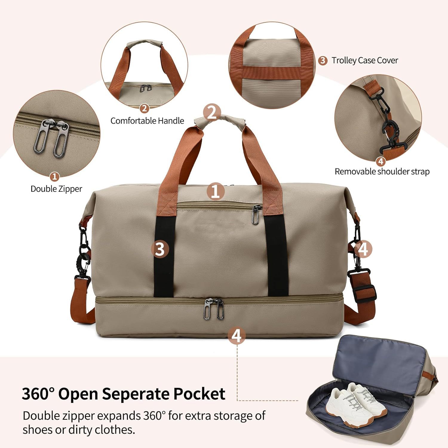 Travel Bag Sports Gym Bag with Shoe Compartment & Wet Pocket, Foldable Weekend Travel Duffle Bag for Men Women, Large Capacity Portable Overnight Bag for Vacation, Gym, Sport,Yoga / Item# YH02-156