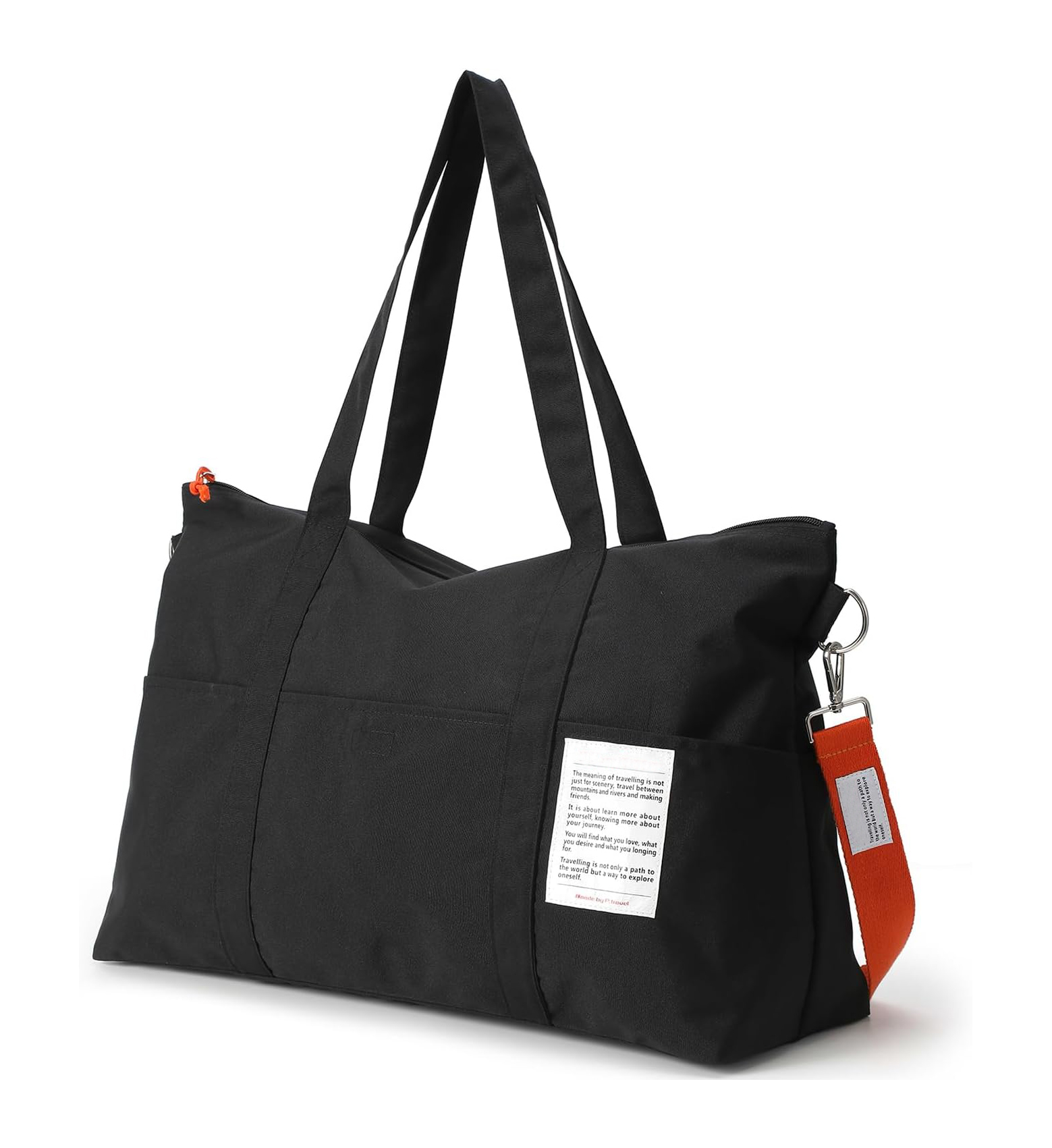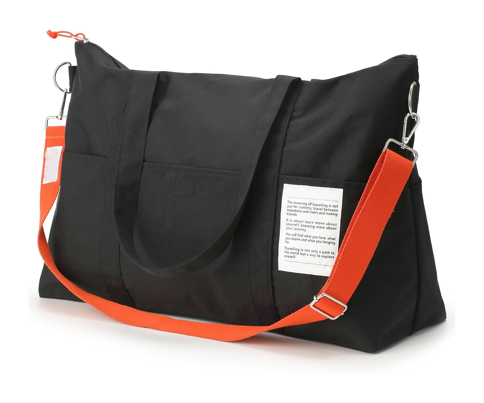 (2)This multifunctional shoulder handbag boasts a stylish, classic, and practical design that is both versatile and portable. It includes one main zippered compartment with an interior zipper pocket, along with six outer quick-access pockets. The bag measures 20 x 13.8 x 7.9 inches (51 x 35 x 20 cm), making it perfect for short trips, vacations, camping, and hiking.